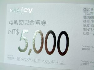 Sisley希斯黎母親節5000現金禮卷背